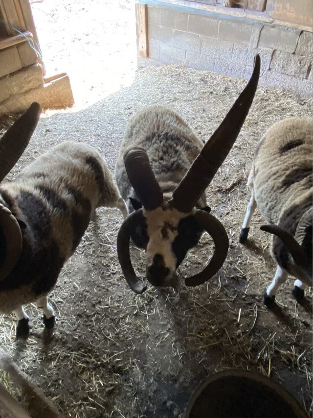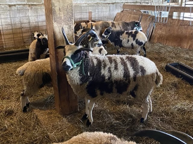 Jacob sheep are in the Threatened category according to the Livestock Conservancy. They were “park sheep” in England in the 1700s and were bred for hardiness, four horns, and spots. I love the color variation in their wool and their eye catching horns. Here is more information from the Livestock Conservancy.