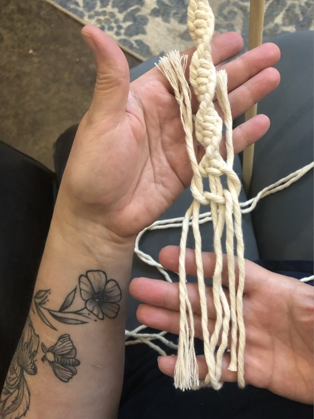 I wanted to make a macrame twisted rope with precut pieces. My center strands were long enough, but the decorative outside strands ran out after about a foot of knotting. I found that laying new strands into a knot in the same direction as the old strands then tightening the knot, trimming, and sealing with white glue made a near invisible join.
