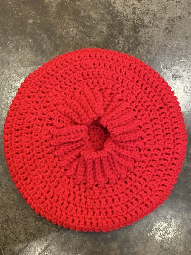 Once again distracted, I decided to try a crochet puff stitch to add some texture to a hat. And again, my circle expanded flat instead of nice curve, so I finished it as a beret rather than a beanie.