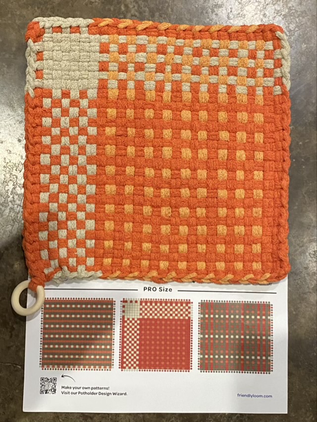 I made one of the designs they suggested on a card they sent, and the card also has a link to the Potholder Design Wizard. Like I said, they have my number.