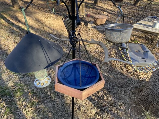 Our last ice storm broke all my ceramic and glass bird baths. Some of the old pottery had been outside for years. We must have had hail because they were all just shattered. I ordered a hanging water container made of wood and plastic rather than risk breakage again.