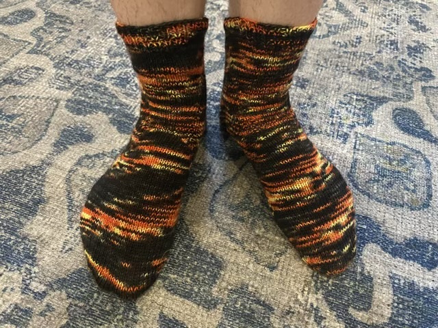 I cast these socks on in April, 2024. I called them finished 13 months later. My eldest graciously said they could end below the calf (phew).