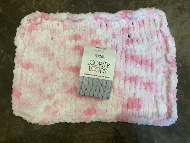 I originally purchased the Loopity Loops yarn for my kids. I thought it would be a less frustrating introduction to knitting, as you don’t need needles and don’t have to worry about tension. My eldest fully immersed in the project, made a small blanket, then bought enough yarn for a large throw, and finished it within a couple days.