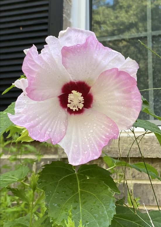 I thought the Hibiscus didn’t make it through the last winter, but it bravely grew up through the Gregg’s Mistflower and managed a bloom.