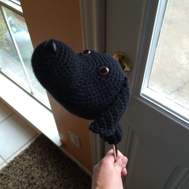 In February 2015 I finished crocheting a driver cover for my Dad, in the shape of a black Labrador head.