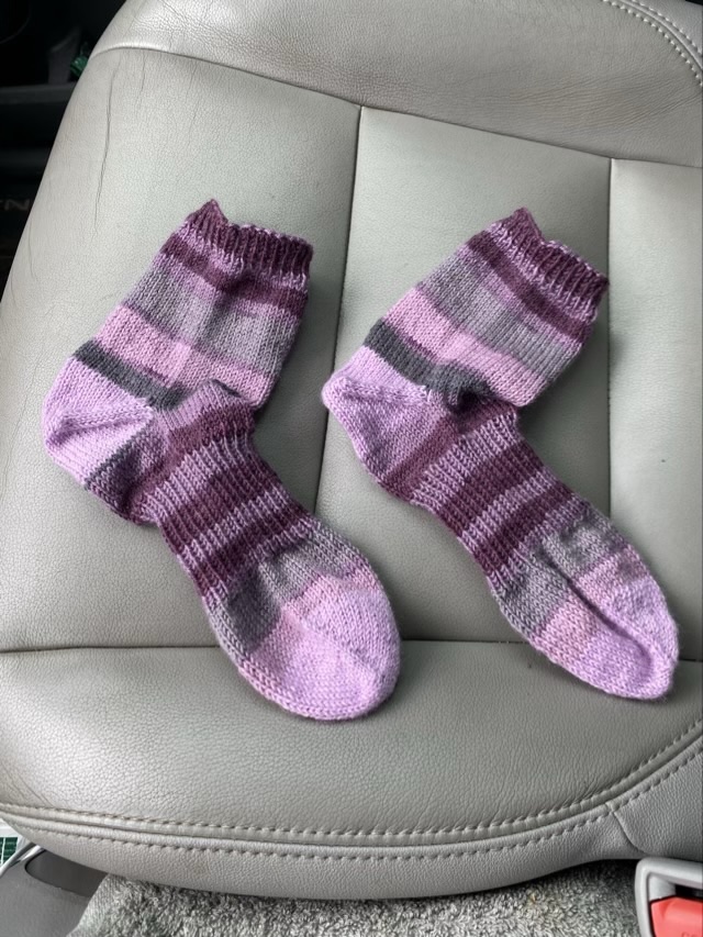 I finished a pair of socks in three months! This is much better than the year and a half for the last pair. It must be noted that I can only knit for about 15 minutes before I get distracted; I am not a power knitter. I usually knit as a time filler between other activities.