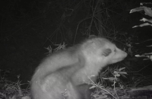 Is it me, or does this look like an old opossum? Maybe it is because it is in the middle of a good ear scratch, but the scene gives me cantankerous old dude vibes.