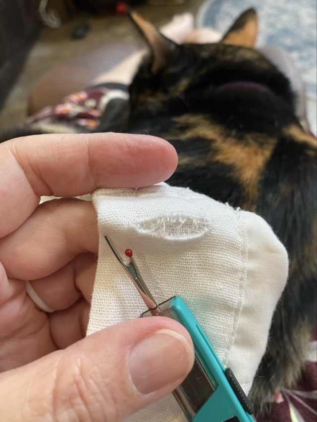 I have hand sewn my first button hole. I bought a linen skirt to be a petticoat for my 1800s outfit for spinning demonstrations, and it was a bit big in the waist. One side of the waistband had elastic, but the other had a plain waistband. A machine sewn button hole would go through both layers of fabric and be useless, so I hand sewed the edges of the button hole with a satin stitch in just the inside layer of fabric.