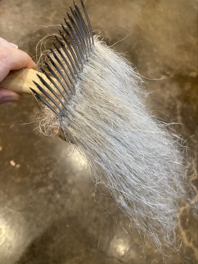 Photo description: flax fibers combed with wool combs