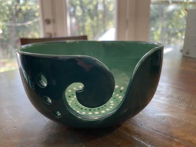 I have been wanting a yarn bowl, so when we went for another round of ceramic painting and there was an unpainted yarn bowl, I took the leap.
