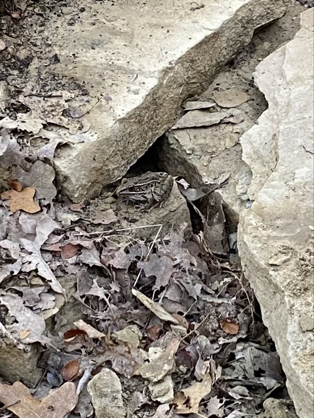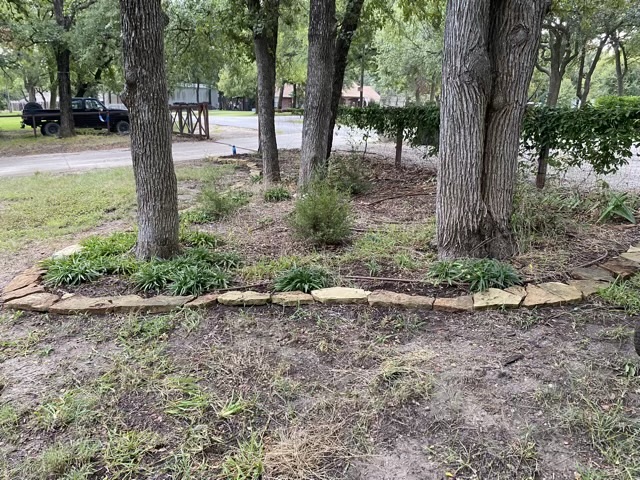 The idea started when I noticed that the grape hyacinth bulbs were poking up out of the ground. Not in a growing way, but that the soil was washing away. We have leftover native stone from the back porch project, so I hauled some rock to the front yard to redefine the flower bed and make a soil stop to keep the dirt from washing away.