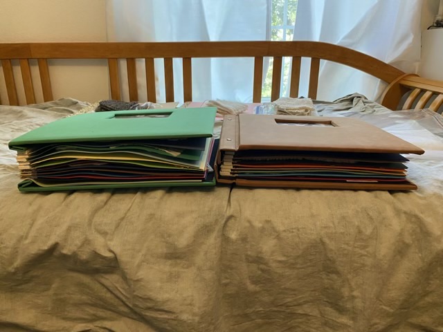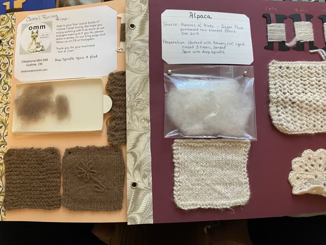 I kept the foam spacers at the post side, and also added space for a 12×12 sheet after each fiber page, where I plan to put a description of each fiber, and some of the blog posts I wrote when spinning each fiber. This is definitely still a work in progress.