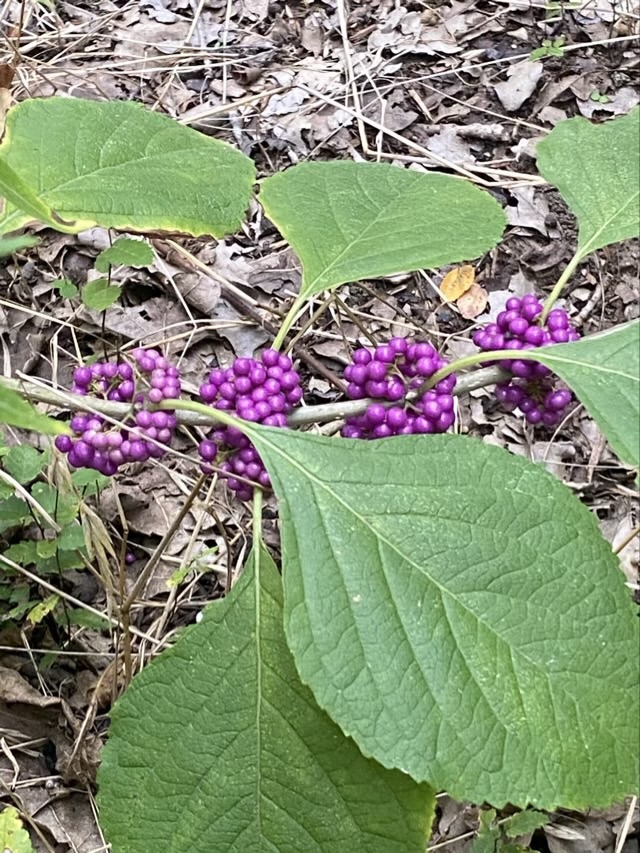 This particular bush lives in a raised glower bed on a more shaded corner of the house. American Beautyberry is known for being shade loving.