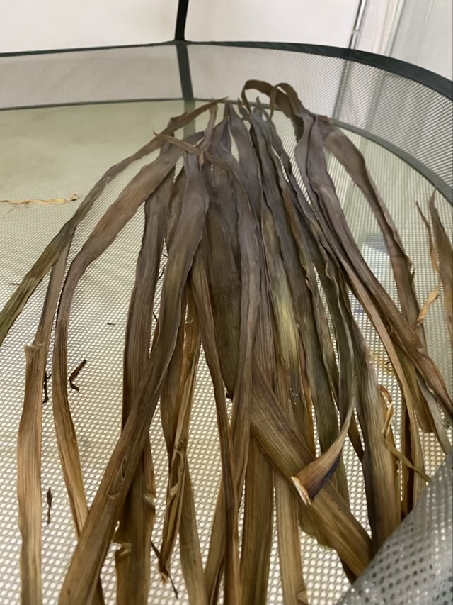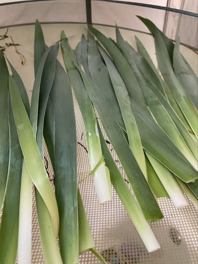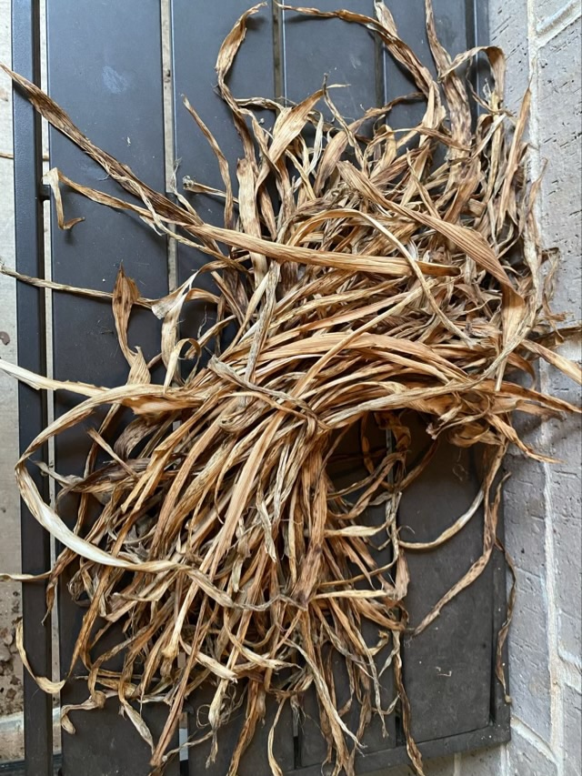 In April I gathered some iris leaves and let them dry inside on a drying rack.