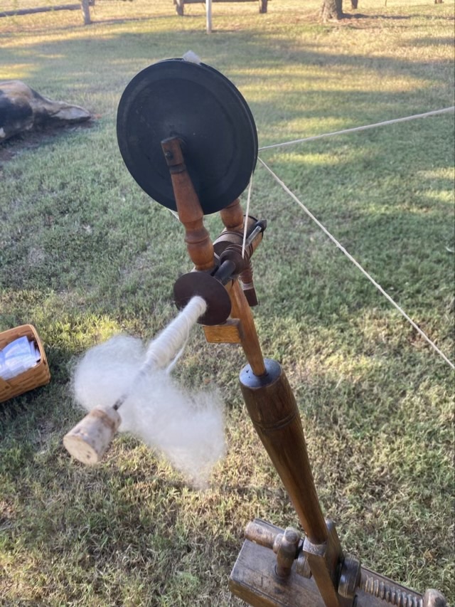 This post is part of a series about my experience demonstrating spinning on a 1860s Great Wheel in Mansfield Texas.