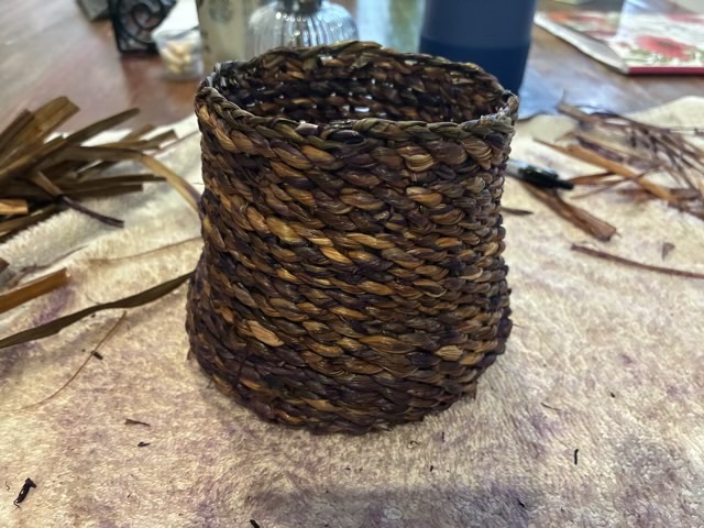 I like twining, so plan on harvesting more iris leaves in the spring, drying, and practicing on more twined baskets.