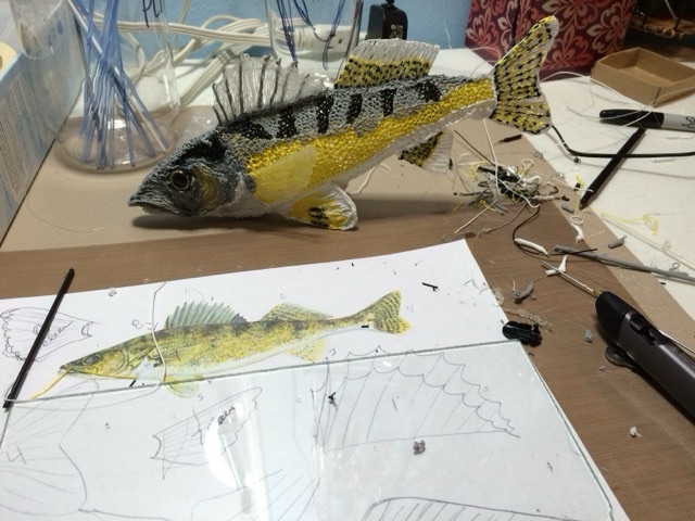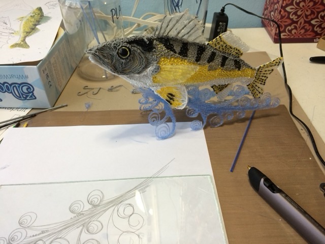 In June of 2016 I was experimenting with the 3Doodler, a pen shaped device that extrudes hot plastic, like a 3D printer, but hand driven rather than computer driven. I decided to make a walleye fish, for my Dad, to experiment with construction.