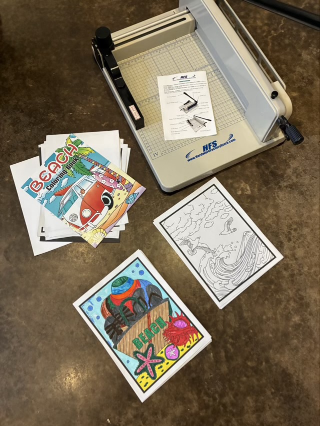 My youngest was pleasantly surprised with the fresh stack of ready-to-color sheets, and I was pleased with how fast and clean the cutter worked. Tearing sheets out of a book is often messy and frustrating. By cutting a 1/4 inch off the spine, the pages are freed from the glue easily.