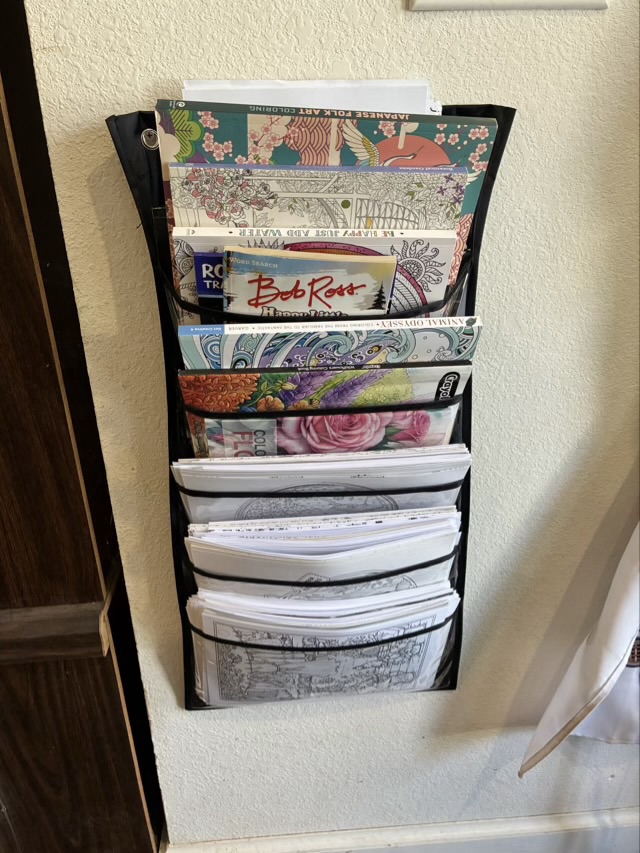 Once my concept was proved, my youngest agreed to let me process the rest of the books. Any book that only had one or two colored pages I left alone, but the books that were mostly colored were cut and sorted.