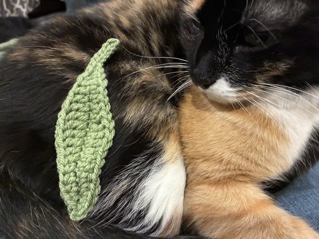 This first leaf started with a chain, then I worked each side of the chain with single crochet, half-double crochet, double crochet, and triple crochet to make curved sides. The stem is slip stitched.