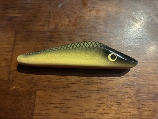 I did coat the lure in a water proof gloss finish, but didn’t take a picture at the time. Below is a picture of the lure in 2026.