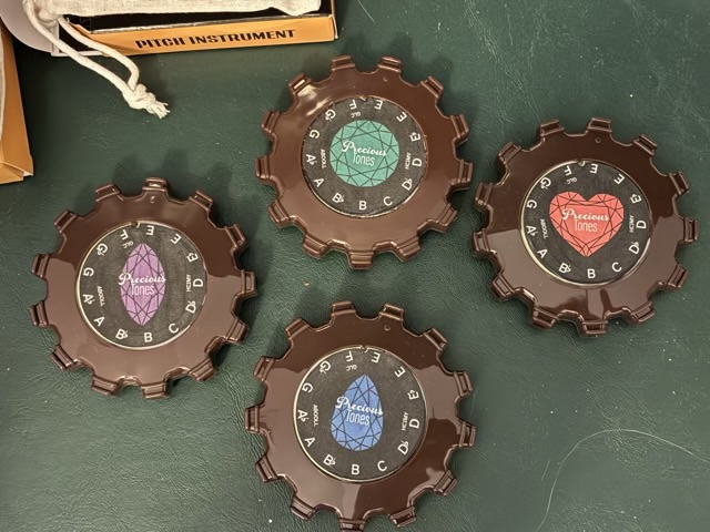 My quartet uses Tombo Pitch Pipes. I’ve see fully customized pipes with different colors and logos! I dipped my toes in the waters of customization and applied a custom paper to the decal in the center of the pipe.