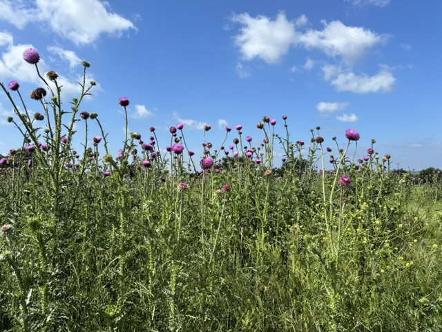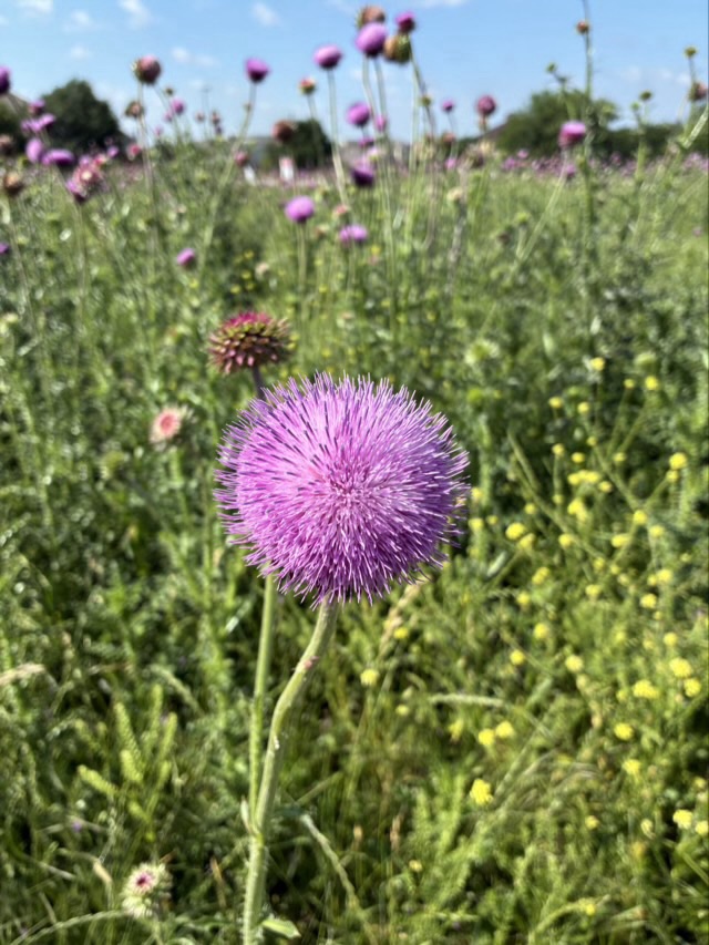 I love purple thistles. The adoration probably started when I visited Scotland where it is the national flower. Yes, they are prickly, yes, they take over wild areas, but the blooms are stunning and grow tall and strong.