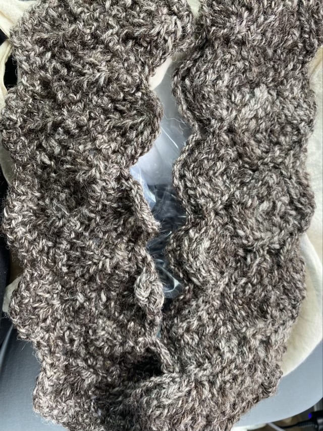 I don’t often rip out my needle work, I usually find a way to make it work either for the original purpose or by pivoting to a new use. For example, a hat that is too narrow for a head becomes a drawstring bag. I have to be deeply unhappy with the work, or really be in love with the yarn. In this instance it was both. I found a pattern for a dragon scale crocheted blanket that looks fabulous with color changing yarn. I love the idea of dragon scales and tried it with my hand-spun Jacob’s wool yarn. The pattern completely disappeared in the marled yarn, the fabric was heavy, and was tedious to crochet.