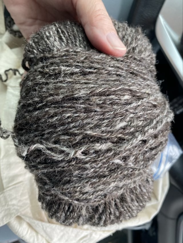 I later did rewind the yarn cake and started on a new crochet pattern with a more open stitch.