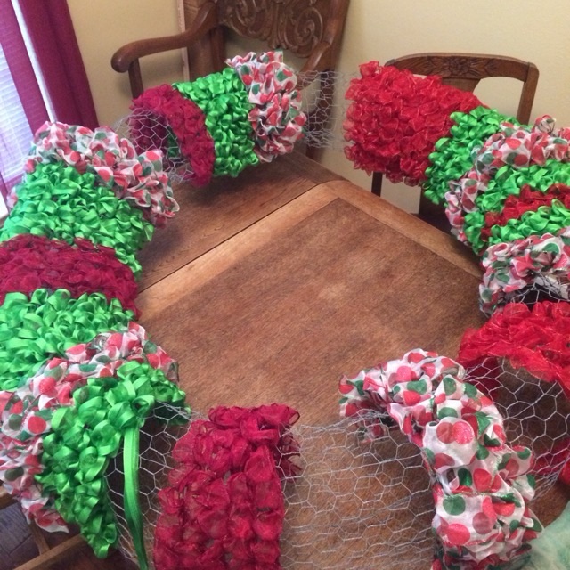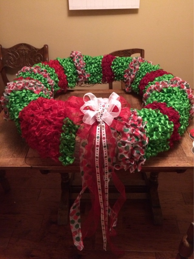 Sometimes things just don’t work out the way I hope. In December 2015 I made a large wreath from poultry wire and ribbon. It took me over a week to get all the loops of ribbon installed, and I had to buy more ribbon because I underestimated yardage. I should have made it smaller, but the thought of undoing it was worse than just pressing forward.