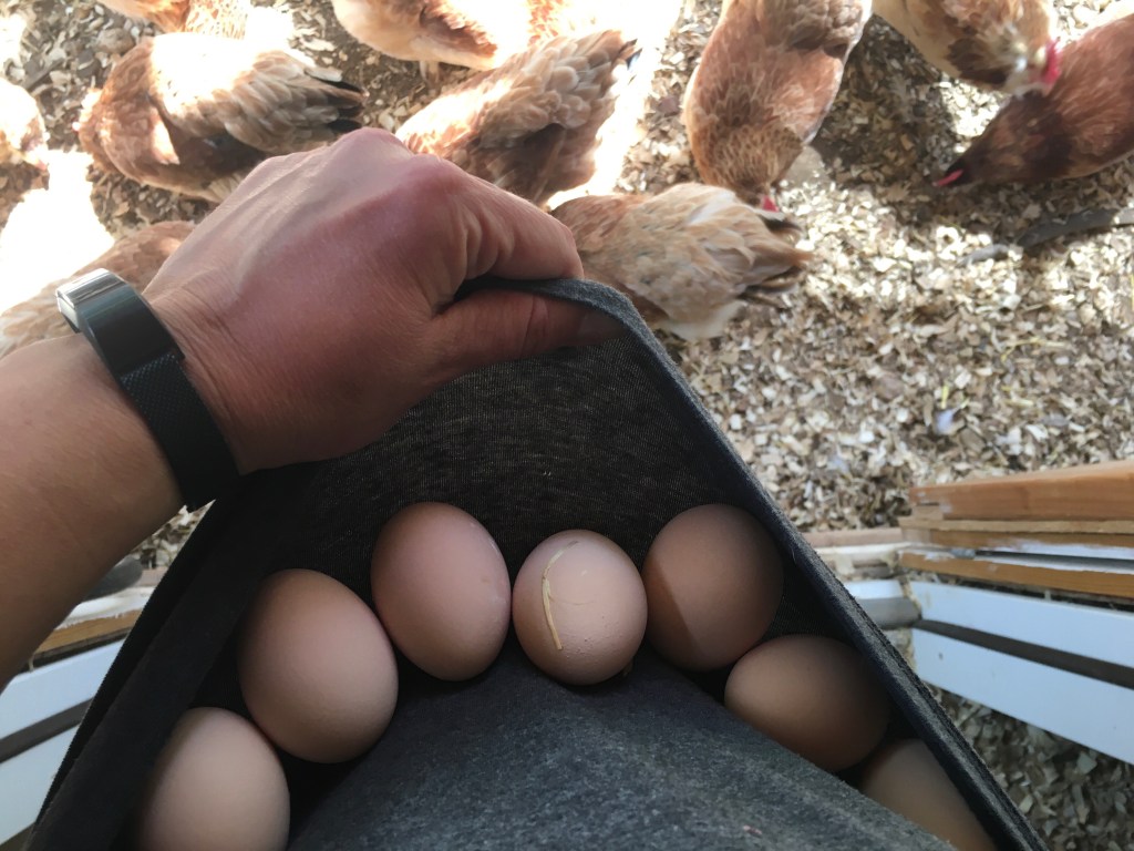 When I was turning over the night droppings under the roost I found a very small, shell less egg. This is the second shell less egg, but this one had a rubbery exterior like I’ve seen in videos, but no yolk. It was only 18g! I recorded breaking it open, then I fed the whites to the dog; he has a stronger stomach.