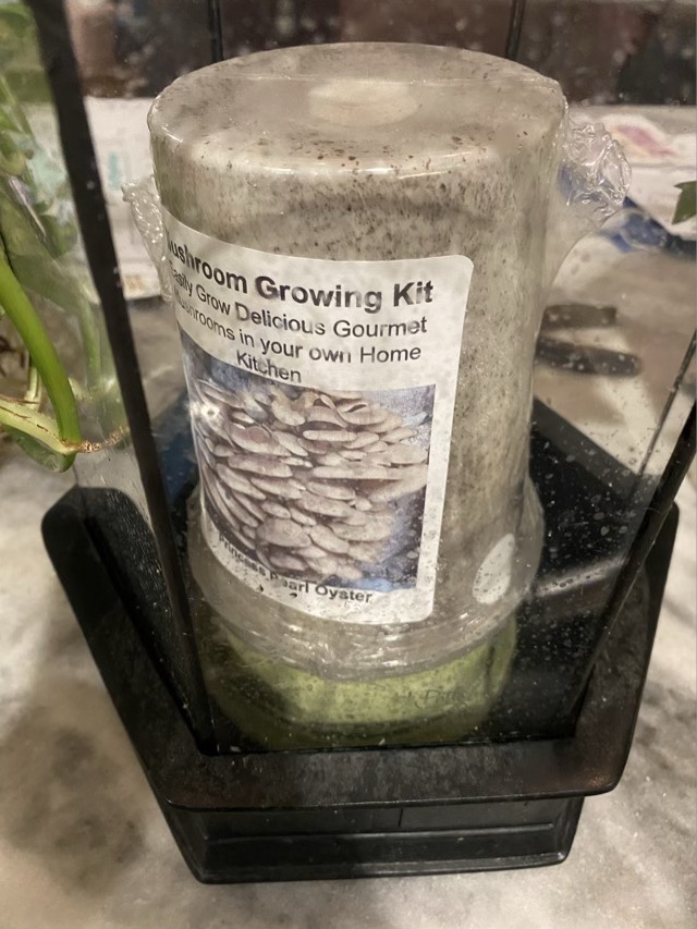 The “grow your own” mushroom experiment ground to a halt. The kit did produce a few mushrooms, but the container I had them in wasn’t big enough for the fruiting body to fully develop. I moved them to a larger plastic container, put water in the bottom to keep the humidity up, and the whole thing shriveled. Hm. There were a couple of fruiting starts, but they haven’t grown at all.