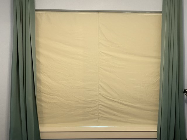 Velcro didn’t mess around with this product. It is one of the strongest hook and loops I’ve encountered. Our customer service person cutting the Velcro put it together before cutting. Next time, I will ask for the two parts to be cut separately. So sticky. My window frame is a half-inch, and the Velcro was 3/4”, so I had to cut the hard side down to fit. There is still some light that creeps through, but paired with the hanging curtain, it is dark as pitch in the room. Except for the light coming from the closet, which also has a window. I have another curtain to sew.