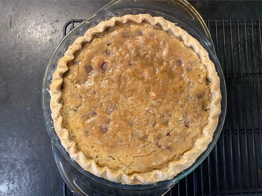 The crust recipe is for 2 crusts, so I used the first for my youngest’s favorite: Chocolate Chip Pie. I use this recipe, which is awesome as is. Either Gluten-Free flour or Heritage Wheat Flour work fine for the added flour.
