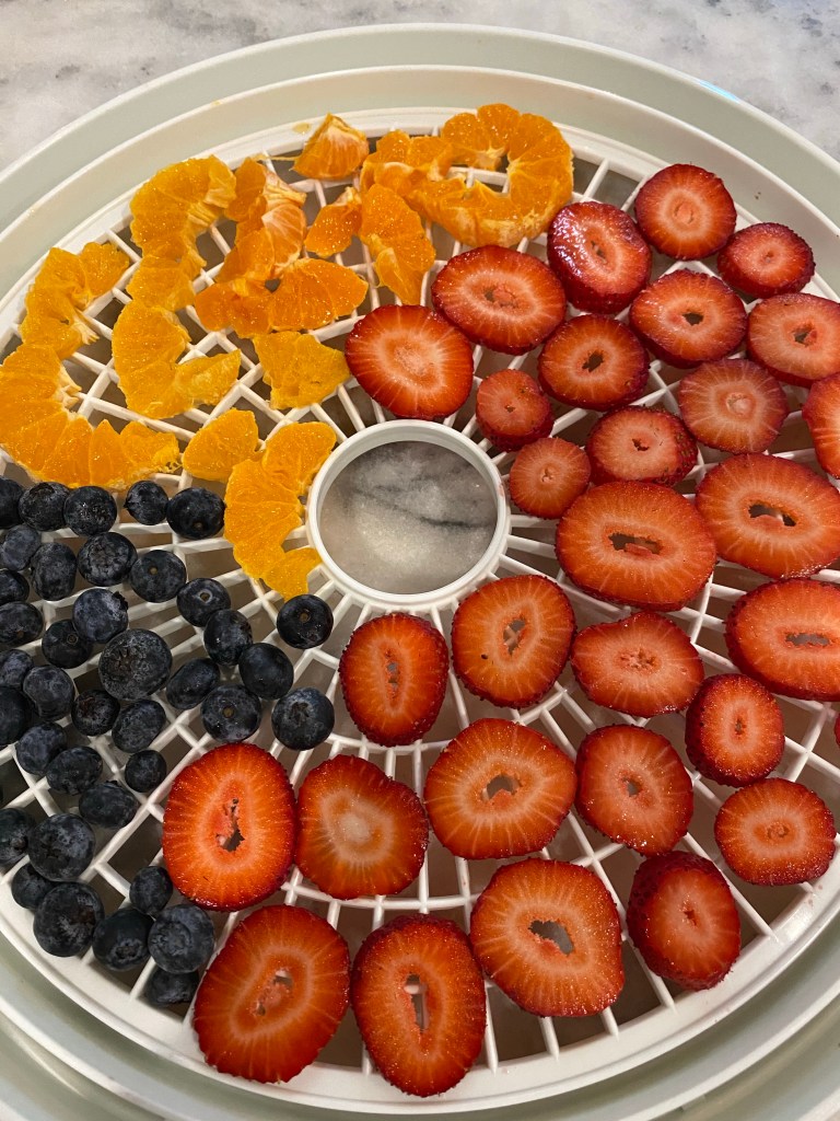 I didn’t slice the blueberries, and they did dry out hardly at all. The mandarin orange was the most surprising; I liked the texture and taste dehydrated!