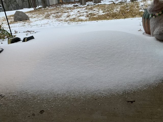 Yesterday my weather app said that we were getting heavy snow. What was falling from the sky is not what I call snow. It made a “tink” noise as it hit the ground and bounced… then stuck. In the morning it looked like we had and inch of snow on the ground, but it was completely solid and could hold weight, no footprints in this accumulation. The National Weather Service describes sleet as frozen raindrops that bounce. The Farmer’s Almanac says sleet is rain mixed with snow. (They also have an article on all the words for snow. Cool.) But none of that adequately describes what was happening here. I think the best term is “ice storm”. I have seen ice accumulation before, but not where the ice layer can be measured in inches. There was a pile of the stuff out our front door that could hold my weight.