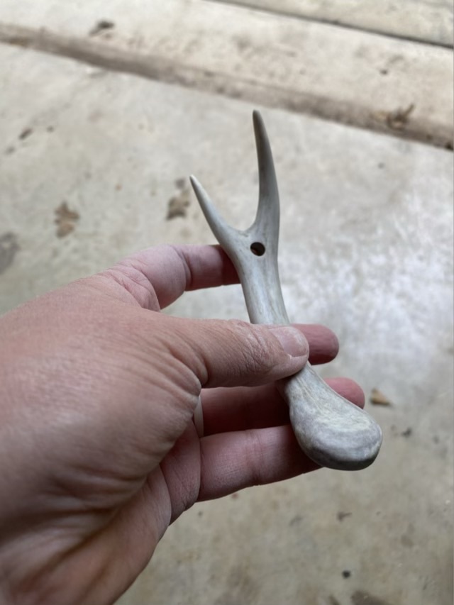 The antler works well to make cord! The shiny bone surface allows the string to move smoothly along the tines, and which aids the ease of making. Curious on how lucet forks are used? Here is a link to my video how-to!