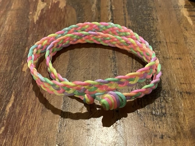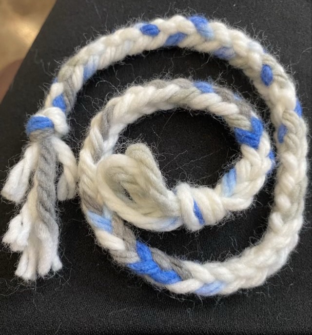 I came across an influencer video doing a round braid on hair and had to give it a go. When I tried it, it was a fail, but I figured out why. They didn’t show the twist of the side strands, which is the magic that makes the braid work and not just make two three-strand braids at the same time (which could be useful for other applications later). So to remember what I did, I recorded a video using thick yarn, so it was easier to see the twist action. I like this method because it is similar to a three strand braid, which I’ve been doing since I was 8 years old.