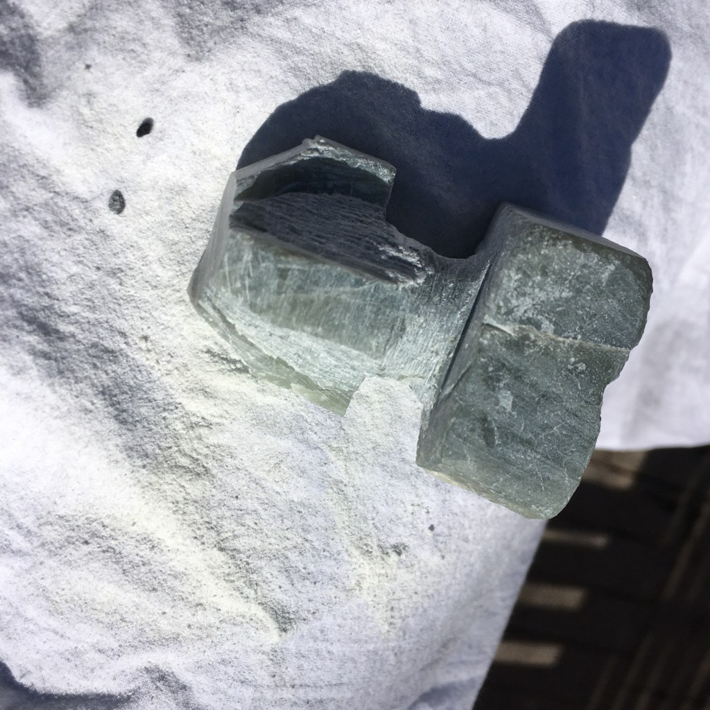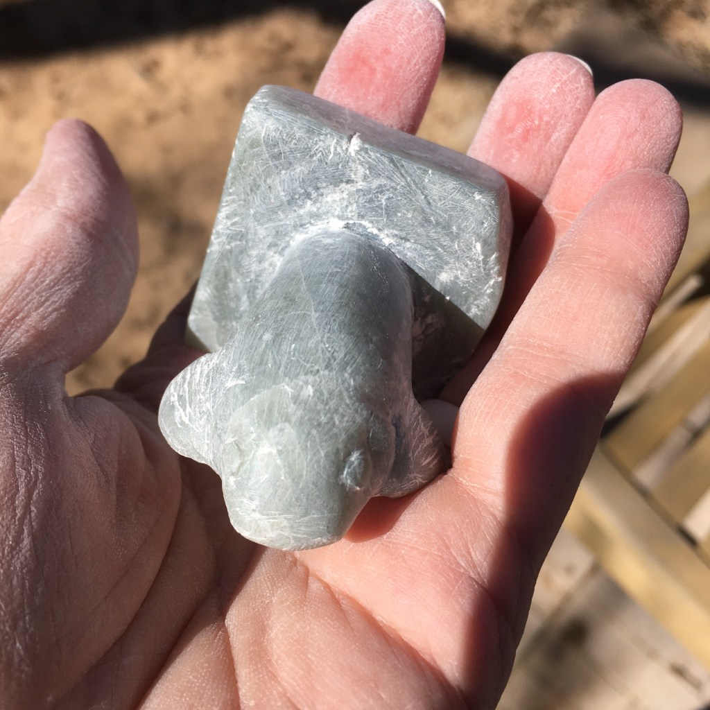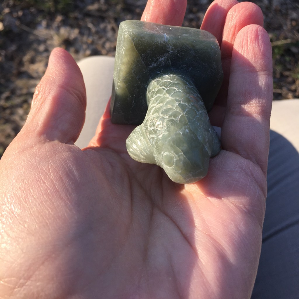 I wanted to make something special for my Dad’s 75th birthday. I had a piece of soapstone in my stash, and I know he likes small things to go in his shelves, so I pulled it out and stared at it for awhile, willing it to tell me what it wanted to be. It wasn’t talking. My eldest had the idea of doing a relief carving of a koi (koi are long lived). I liked the idea, but the stone was suited better for an unusual relief, more of an emerging. I set about removing the excess material to release the inner koi.