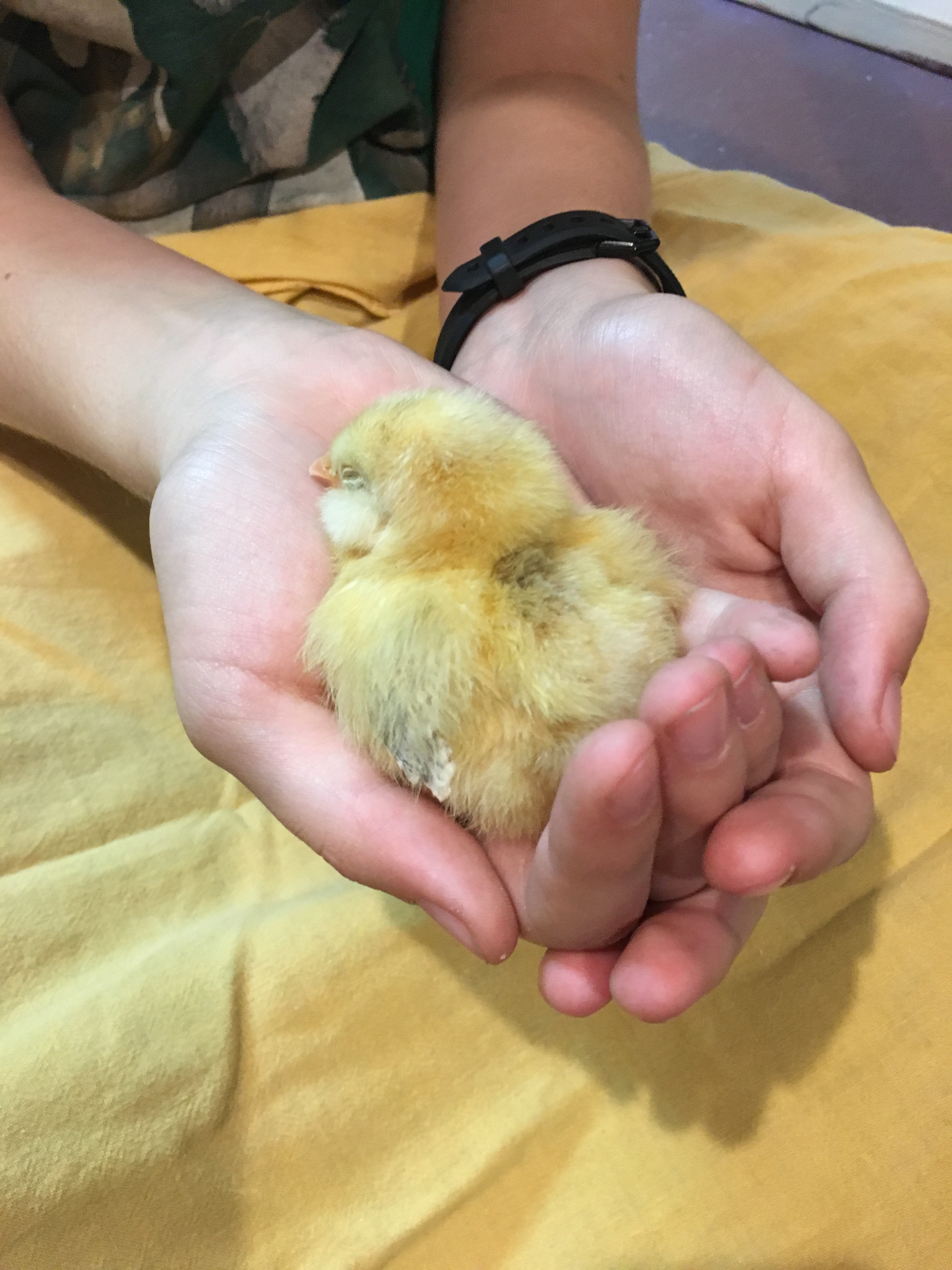 Our kids were super excited when I picked them up from school. My eldest is already training them to be lap chickens. I think she will be successful because one fell asleep in her hand!