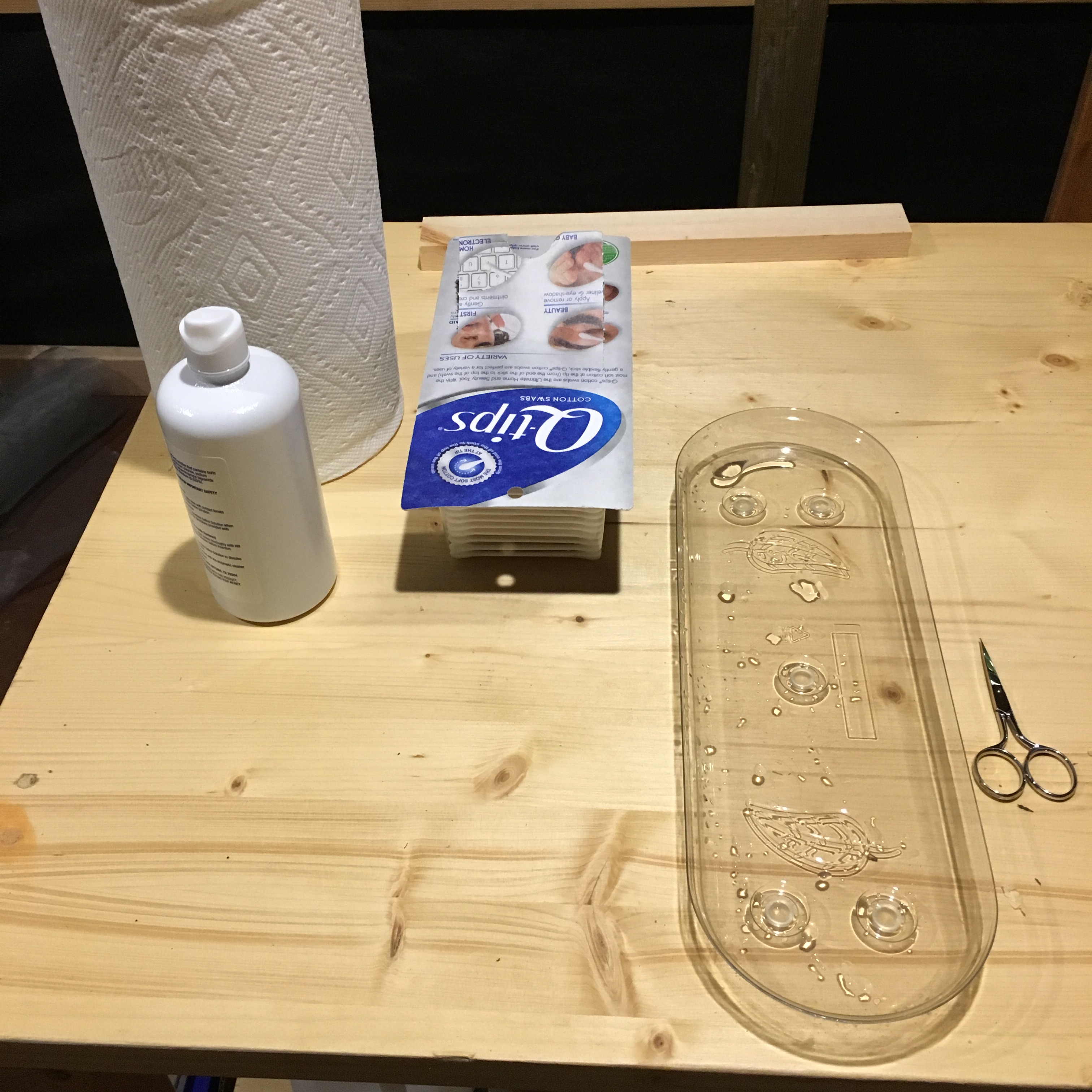 The table that I originally made to the hold the brooder (aka dog crate), makes a great prep table. I’ve been using it to clean up pasty butt. They started out pretty clean, but are getting more stuck to their feathers now. We are making twice daily checks of all 12 chicks.