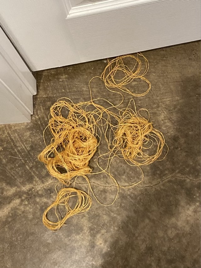I learned to twine with a Z twist, which is opposite of the S twist that Sally Pointer demonstrates for beginners. This is fine, but when I went to start the twisted loops for the bag, the technique makes Z twists for each loop. I thought my bag would be happier (less twisty) if I made S twists to balance the Z cordage, so had to adjust the way I made loops by going in the opposite way from the video. It took some brain power, and I’m going to have to be careful going forward to keep the same stitch direction, but I think it will be worth it.