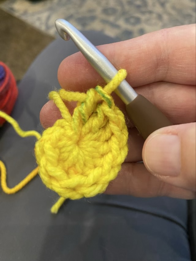 At one point I ran out the door for school pickup and dropped my nal somewhere. Waiting in the car I crafted one out of a straw by cutting one end at an angle and making two slits at the other end to hold the yarn. It worked, but wasn’t as pleasant as my wool polished cherry wood nal. I’m glad I found it when I returned home.