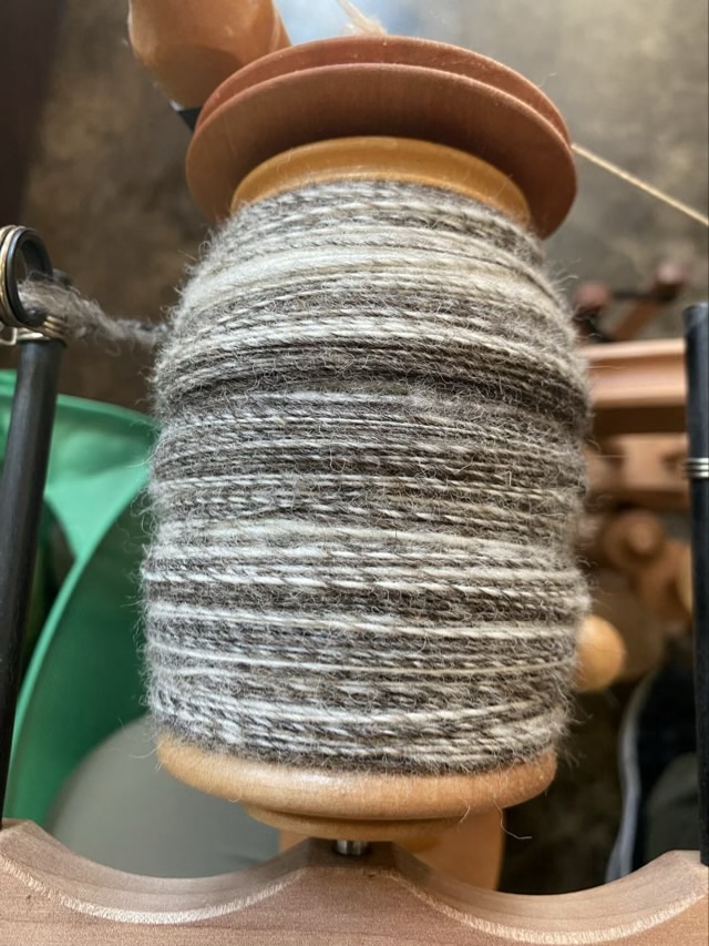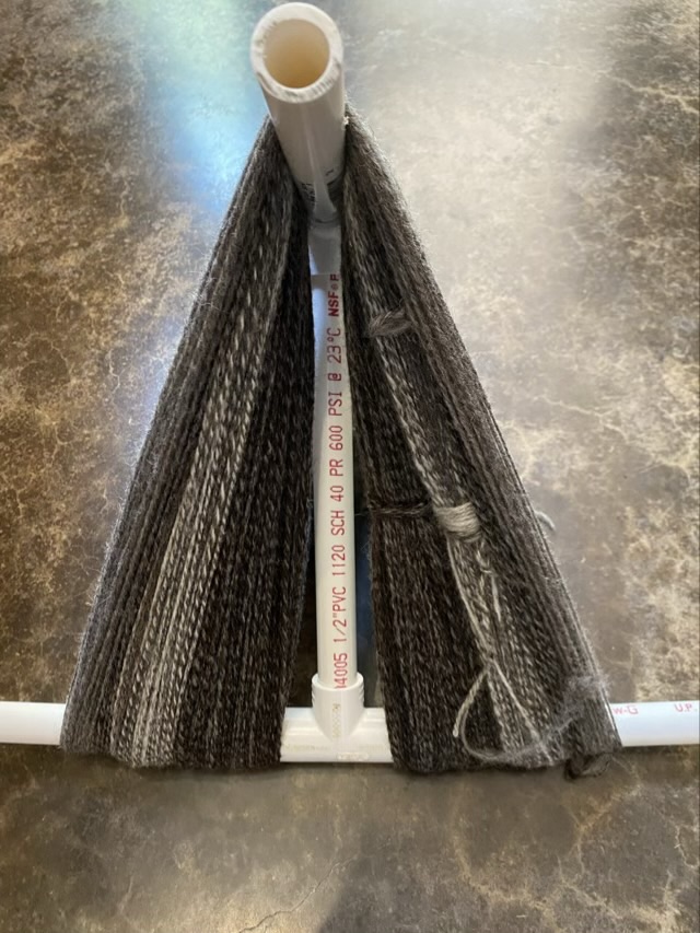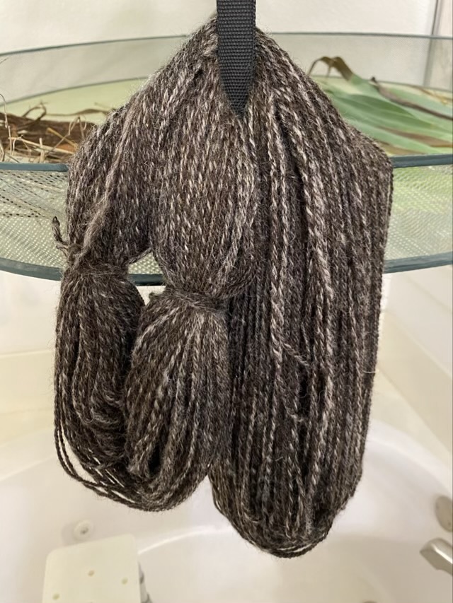 I transferred all my three-ply hand spun Jacob’s sheep yarn to my PVC niddy noddy.