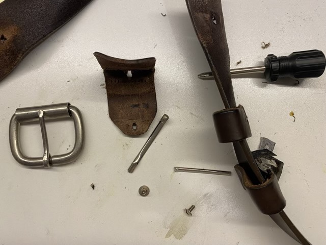 My husband loves his Italian made leather belt, but the metal fatigued and broke the other day. Luckily I had a buckle in my stash, and the belt is so well designed, I could fix it.