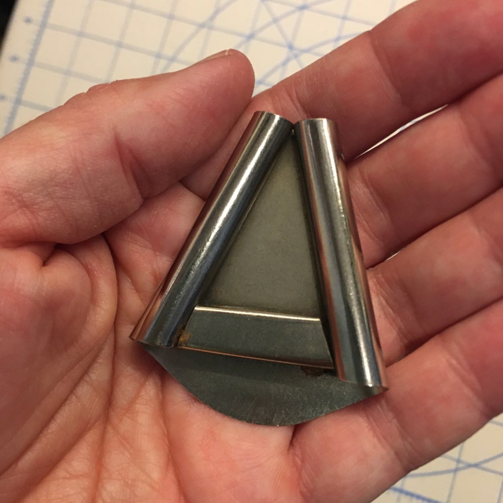 I dug out an old bias tape maker from my sewing box and put it to use making fabric ties for cloth masks. I’m honestly not sure whether this particular well-made piece came from one of my grandmothers, or from a bundle of goodies from a garage sale. There are no makers marks, and definitely no remaining packaging.