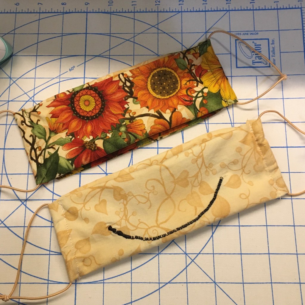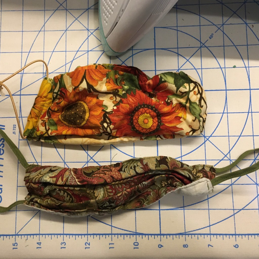 I do wash the fabric on hot first, then dry using my dryer’s sanitize setting. I also use my steamer to press the fabric twice during assembly. At the end, I put the masks in a plastic bag so the cat doesn’t sleep on them.