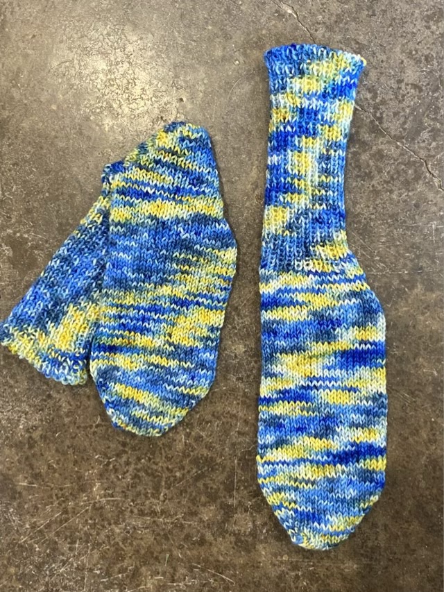 My spinning and plying created a “bulky” yarn, about 8 wraps per inch (wpi), so I knit with size 11 needles by Prym.