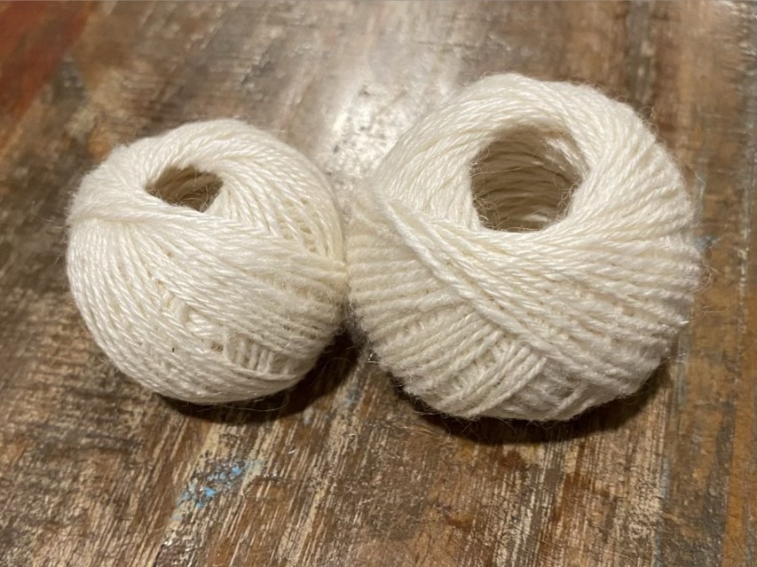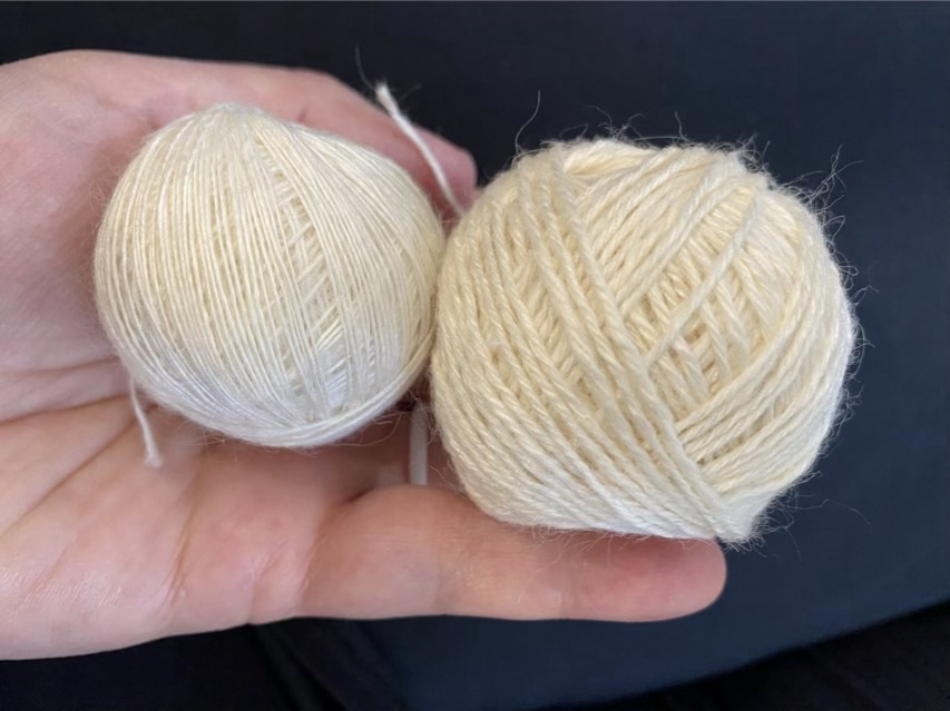 The rather rough single spun yarn felt much softer once it was plied into a multi-strand yarn.
