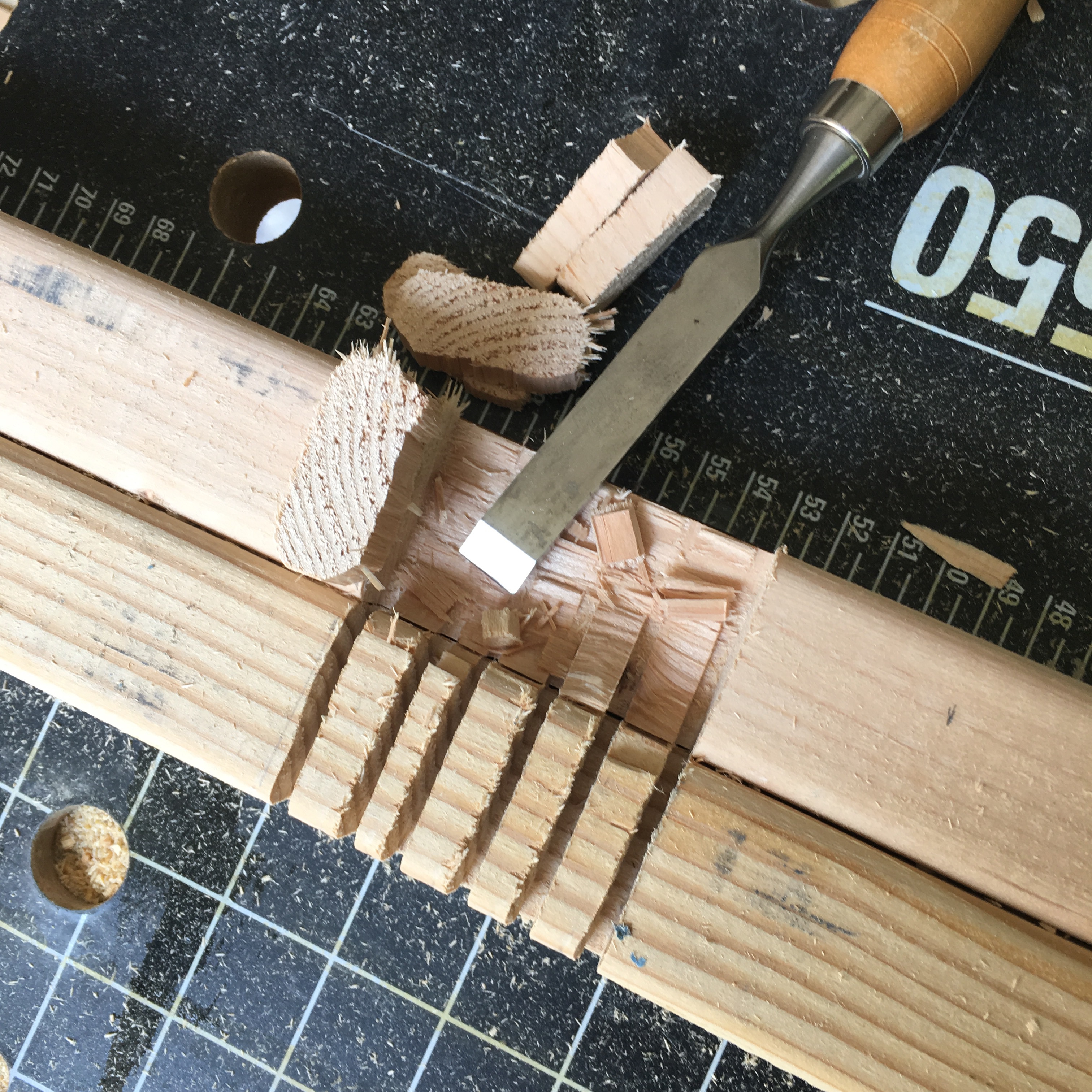 I cut the rabbets using a skill saw to make several parallel cuts, then removed the excess with a hammer and chisel. I did both 2×4 sides together so they would match.